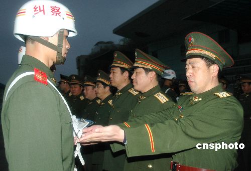 3月15日,武警江苏总队支队主官培训在武警某训练基地举行,来自基层部队的军事、政治主官以普通士兵的身份集中接受业务培训,以此提升“一线指挥部”战斗力。中新社发 唐占军 摄