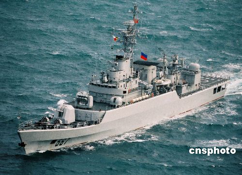 5月11日,中国海军“襄樊”号护卫舰从海南三亚起航前往新加坡,参加5月15日至20日在该国附近海域举行的“第二届西太平洋海军论坛多边海上演习”和该国主办的“2007亚洲国际海事防务展”。“襄樊”号护卫舰是我国自行设计建造的具有反舰、防空和反潜等作战用途的多功能新型护卫舰,有“海上多面手”之美誉。中新社发 张全跃 摄