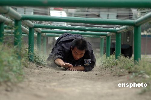 7月5日,山西省公安系统警务实战基础大比武在山西省警官高等专科学校开幕。来自全省11个地市公安系统的优秀干警们在这里聚会,他们将进行为期两天的警务实战技能比拼。本次公安大比武全面倡导“参与、苦练、进取、健康”的主题,以比促练,练兵为战,战之必胜,从而促进全省公安队伍整体素质和战斗力的提高。中新社发 韦亮 摄