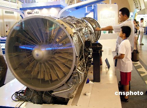 7月9日,上海航天航空展中展出一台重1842公斤、总长5.2米、最大直径达1.09米的“厚黑”发动机真品。据介绍,这台名为“秦岭”的发动机,是中国完全依靠民族工业试制出的第一台中等推力(推力6—9吨)的双转子加力式涡轮风扇发动机,主要装配中国“飞豹”战斗轰炸机,可提高战斗机的飞行水平和作战能力。中新社发 绍常 摄
