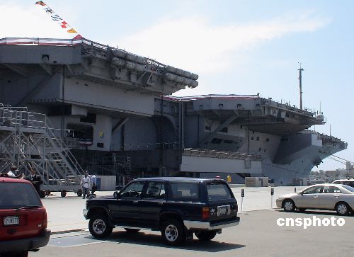 美国媒体近日披露,美国海军最新型核动力航空母舰里根号如今已在圣地亚哥军港维修三个多月了。原因是上次出巡澳洲时,以水母为主的大量浮游生物被吸入空气压缩机进水口后,几乎弄瘫痪了这艘庞大军舰。专家认为都是地球气候变暖惹得祸,水母打败了航母。图为圣地亚哥军港里的里根号航空母舰。中新社发 贾国荣 摄