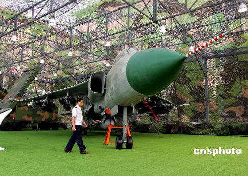 为庆祝中国人民解放军建军80周年,“我们的队伍向太阳”新中国成立以来国防和军队建设成就展览于7月16日在北京军事博物馆隆重开幕,图为展览上展示的的新型歼击轰炸机。中新社发 宋吉河 摄