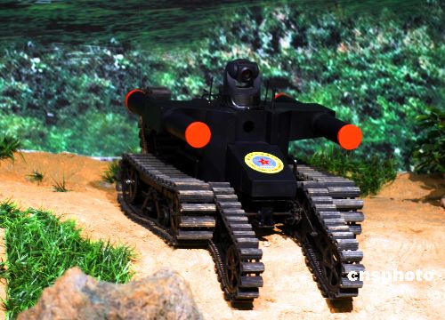 “我们的队伍向太阳”新中国成立以来国防和军队建设成就展览,7月16日上午在军事博物馆隆重开幕,国防科技大学研制的作战机器人与观众见面。中新社发 宋吉河 摄