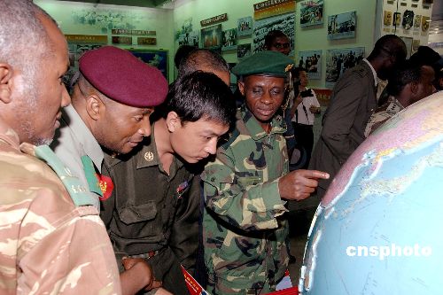 7月18日晚,中国人民革命军事博物馆灯火辉煌。各国驻华武官、国防大学防务学院留学生数百人,应邀以专场的形式,参观了“我们的队伍向太阳----新中国成立以来国防和军队建设成就展”。中新社发 吴苏琳 摄