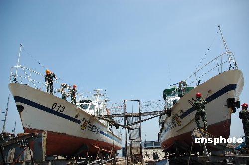 8月1日,驻守在浙江省台州市椒江区的浙江边防总队修船厂的战士们冒着38摄氏度的高温抢修船艇。当日是“八一”建军节,为了工程进度,官兵们主动放弃休息时间,奋战在施工第一线,确保军、地公务船舶能安时、合格的下船坞。中新社发 郏策 摄
