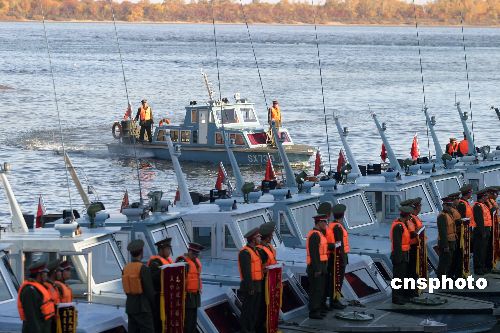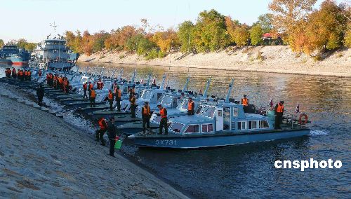 10月4日,驻黑河某边防巡逻艇大队首批执勤船艇,圆满完成2007年度中俄界河黑龙江明水期巡逻执勤任务,船艇编队胜利返航驶入军港。