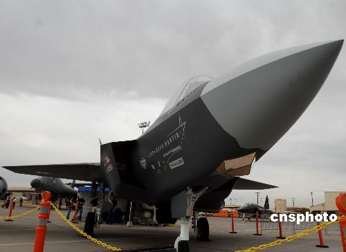 美国十一月中旬在内华达州内利斯空军基地举行纪念空军成立六十年大规模飞机展示中,未来主力战机F-35“闪电2联合攻击战斗机”的公开亮相最为瞩目。这种多国合作研制的新一代隐秘战术飞机,将更新装备美国空军、海军和海军陆战队,以及英国皇家海军与皇家空军等多国部队。中新社发 贾国荣 摄