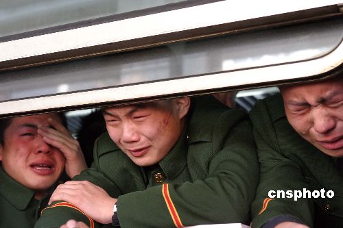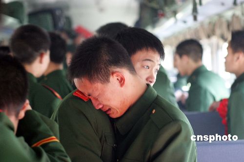 11月26日中午,驻守在中朝边境100多名四川籍边防退伍老兵返乡。中新社发 陈浩浩 摄