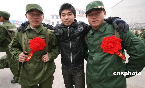12月11日下午,家住安徽蒙城县漆园办事处城北村的双胞胎兄弟郑根林、郑随林同时参军,起程开赴各自部队开始多彩的军营生活。郑家兄弟自幼羡慕军营生活,今年冬季征兵开始后,兄弟俩一起报名参加体检和政审,并双双通过,被解放军某部和武警某部批准入伍,双胞胎兄弟同时参军入伍在当地传为佳话。中新社发 胡卫国 摄