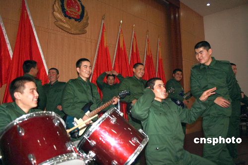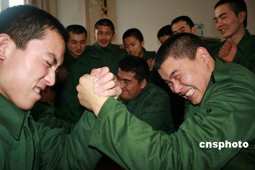 12月20日是穆斯林群众的传统节日古尔邦节。驻守在中哈边境的武警新疆博尔塔拉蒙古自治州边防支队新兵连组织新入伍的少数民族战士开展了丰富多彩的文艺节目,官兵们载歌载舞度过一个愉快的节日。中新社发 王考华 摄