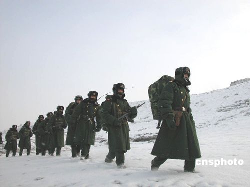12月份以来,新疆阿拉套山山脉普降大雪,驻守在这里的武警新疆边防某部把部队拉进复杂地域开展冬季练兵。中新社发 王考华 摄