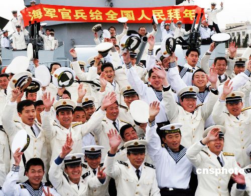 新春佳节,为确保万里海疆的安宁、人民安居乐业,海军某部舰艇顶风斗浪,日夜巡逻在祖国海防线上;靠泊码头的舰艇部队则开展丰富多彩的文体活动,热烈庆祝鼠年新春,祝福祖国繁荣昌盛。中新社发 毛昭胜 摄
