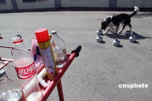 3月19日,武警战士在对消防搜救犬进行训练。沈阳市消防支队特勤三大队的消防搜救犬堪称中国工作犬中的“特种兵”,很多搜救犬具备识别20多种气味的能力,对机油、汽油、柴油、信那水等常见的易燃易爆液体及丙烷等可燃气体的气味的识别率达到100%。它们既可作为寻找鉴别爆炸源及燃烧源的搜救犬,又完全可以胜任机场、车站等重要地区的安检工作犬。中新社发 赵敬东 摄