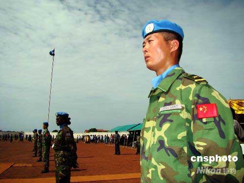 5月29日是第六个国际维和人员日,中国第三批赴苏丹维和部队在驻地与肯尼亚、印度、巴基斯坦等国家维和军人举行庆祝活动,表达对国际维和事业的忠贞,哀悼为维护世界和平牺牲的各国维和军人。为表彰维和人员的高度职业操守、奉献精神和勇气,并悼念为世界和平事业献身的英雄,联合国大会2002年通过决议,将每年5月29日定为联合国国际维和人员日。中新社发 隗章 摄