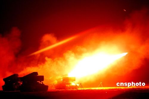 10月18日,济南军区某师炮兵团122自行火箭炮营参加夜间实弹射击考核,取得了优秀成绩。该团积极探索复杂条件下火力突击能力,收效显著。中新社发 毕华明