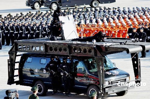11月3日,沈阳市公安局为建局60周年,举行阅兵式。近2000人40个方队,所有警种参加了仪式。阅兵式展示了沈阳公安打击犯罪、反恐的强大力量。中新社发 文契 摄