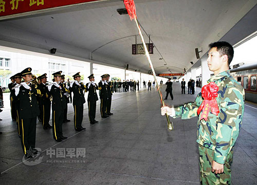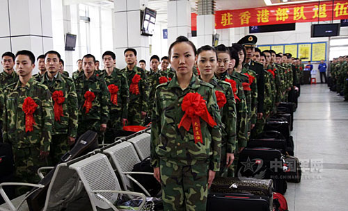 中国军网广州11月23日电 李华敏、记者李伟 报道:11月22日早晨,驻香港部队陆、海、空三军首批千余名服满现役的战士,依依惜别日夜守卫的香港返回内地,在广州火车站踏上返乡列车。