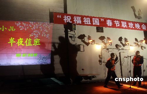 中国传统的除夕前夜,正在印度洋亚丁湾海域执行护航任务的中国海军舰艇编队“海口”号导弹驱逐舰,在舰艉甲板上举行“‘祝福祖国’春节联欢晚会”。护航官兵们纷纷登台献艺,将独具特色的甲板“春晚”推向一个又一个欢乐的高潮。中新社发 孙自法 摄