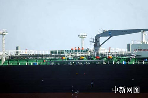 春节前夕,被护商船“凯达”号打出“中国海军,能源卫士!”标语向护航官兵致敬。中新社记者 孙自法 摄