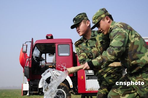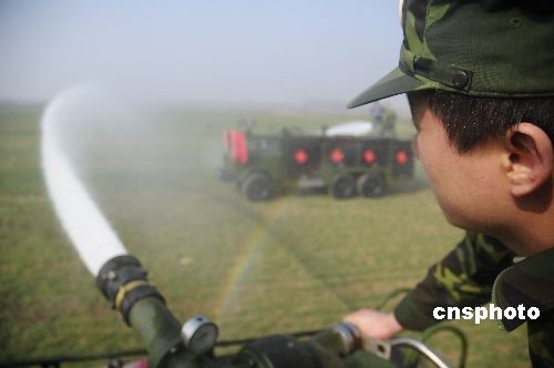 2月10日,驻南阳某部的官兵们组成了一支抗旱抢险突击队,出动了四辆大型洗消车,往返于河沟与麦田之间,让干渴的麦苗酣畅淋漓地喝了个够。中新社发 付海厚 摄