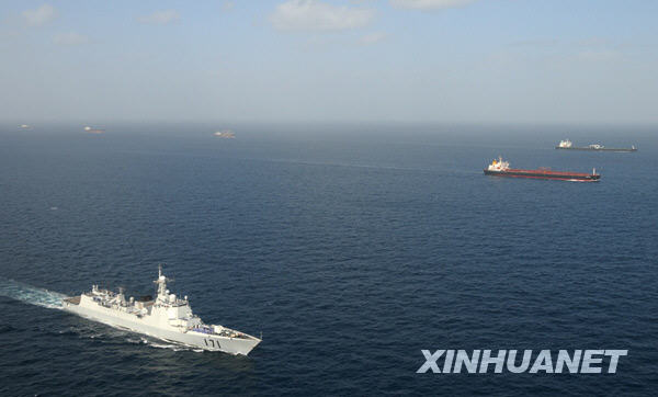 2月18日,中国海军编队成功护送13艘商船安全驶出亚丁湾,这是海军编队完成的第21批次护航任务,也是执行护航任务以来的最大规模的护航行动。船队绵延10公里,场面蔚为壮观。新华社记者 朱鸿亮 摄