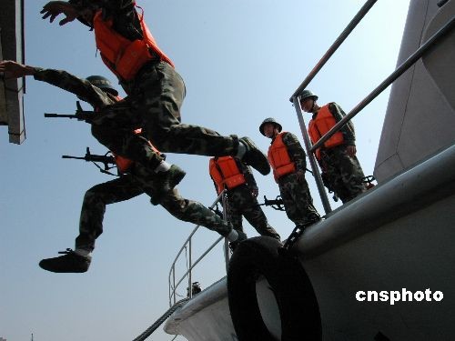4月9日,浙江省温州市公安边防支队以海上反恐、处突为作战背景,开展处置各类恐怖、暴力事件模拟演练,提高复杂条件下的应急处突能力,为“平安海上”营造安定和谐的周边环境。中新社发 吴水斌 摄