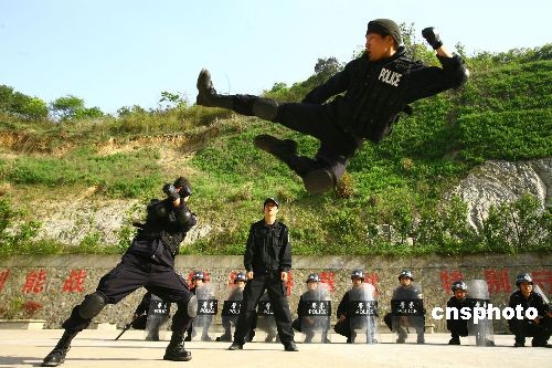 近日,浙江定海警方特警大队举办岗位练兵排位赛,比赛有体能、战术、技能三方面组成,通过此次排位赛,旨在全面提高特警队员的综合作战能力,倾力锤炼一支技艺精湛、作风硬朗的公安特警队伍,更出色地肩负起打击犯罪、维护稳定、保一方平安的重任。中新社发 夏方 摄