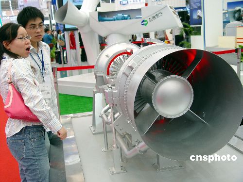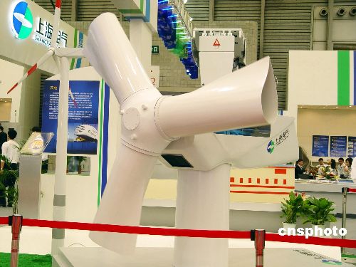 2006中国国际工业博览会11月1日在上海开幕,新能源依然是本届工博会的重头戏。绿色新能源风力发电则是一大亮点。据悉,按照目前5000元/千瓦计算,风电将有1500亿元的市场空间,并创造至少10万个就业机会。中新社发 杨明静 摄
