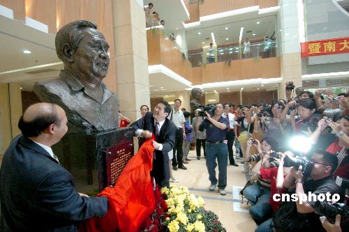 十一月十六日,暨南大学在新建成的图书馆内隆重举行六先贤铜像揭幕仪式,六先贤分别是端方、郑洪年、黄炎培、何炳松、陶铸、廖承志等六人。中新社发 刘卫勇 摄