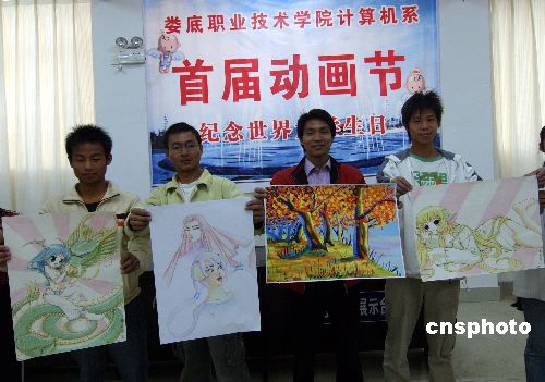 11月17日,湖南娄底职业技术学院的大学生为庆祝第61届“国际大学生节”,举行“首界动画节”等系列活动。背景资料:1939年11月17日,德国法西斯匪徒侵入捷克斯洛伐克屠杀布拉格大学9名学生和2名教授,同时其他名校的男女学生也遭到机枪扫射、殴打和监禁。1946年世界各国学生代表将每年11月17日定为国际大学生节。目的用来激励全世界大学生共同建设一个和平、民主、进步的社会而努力。中新社发 郭国权 摄