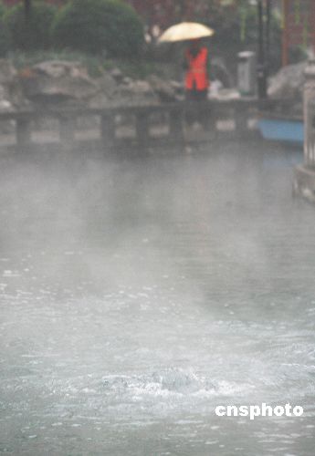 11月26日,济南趵突泉泉池上云雾缭绕,胜似仙境。据介绍,趵突泉群泉水温常年保持在18摄氏度左右。近日,受冷空气影响,济南气温骤降,最低气温降至2摄氏度左右,导致泉水温度大大高于气温,蒸发的水汽上升遇冷形成“云雾”,再现了“云雾润蒸”景观。中新社发 吕传泉 摄