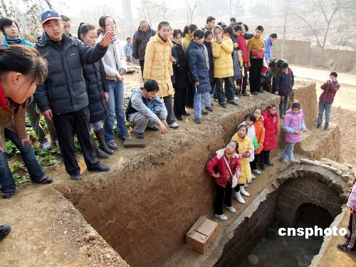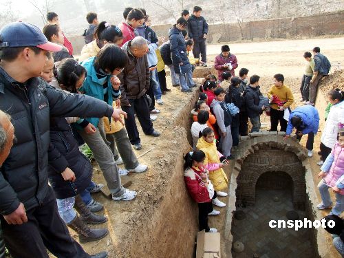 12月22日,镇江市十一中组织正在上历史课的初二学生来到学校附近新发掘出来的东晋古墓群。通过考古专业人员的现场讲解,让学生们在学好书本知识的同时增加了感性认识。中新社发 陶宝强 摄