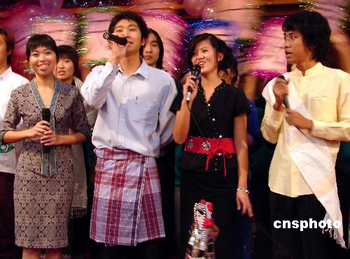 十二月二十八日, 来自泉州华侨大学的境外留学生在迎新年晚会上穿上各自国家的传统服饰载歌载舞,表演了印度舞蹈、泰国歌曲、马来西亚舞剧等精彩节目,为华侨大学的中外师生们献上了一场异域风情浓厚的文艺大餐。中新社发 傅丹丹 摄