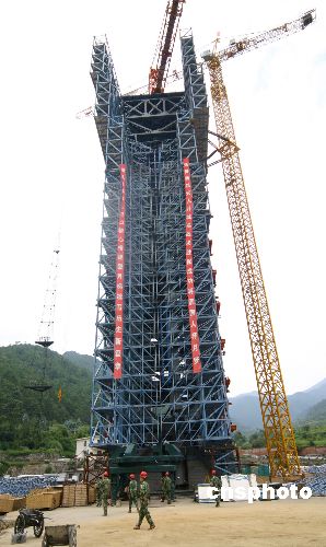 十二月三十日下午,中国西昌卫星发射中心举行仪式庆祝该中心三号发射塔架改造完毕,实现全面“技术升级”并正式启用。航天专家称,西昌卫星发射中心“升级”后的三号发射塔架已成为世界上最先进的发射塔架之一,将极大增强该中心综合试验发射能力。图为三号发射塔架改造升级过程中兴建钢结构主体。中新社发 胡建兵 摄
