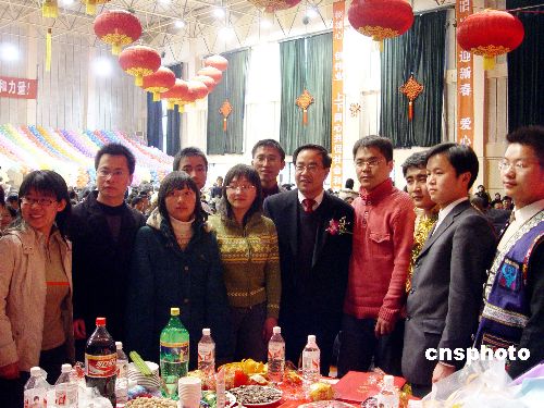 2月11日,十名皆非出自中国名牌大学的大学生被评为“中国大学生自强之星”。这一结果经全国大学生网络投票和专家评审委员会审议评定。当天同时举行的2007首都高校寒假留校学生新春联欢会上,共青团中央书记处第一书记胡春华与他们合影。中新社发 孙宇挺 摄
