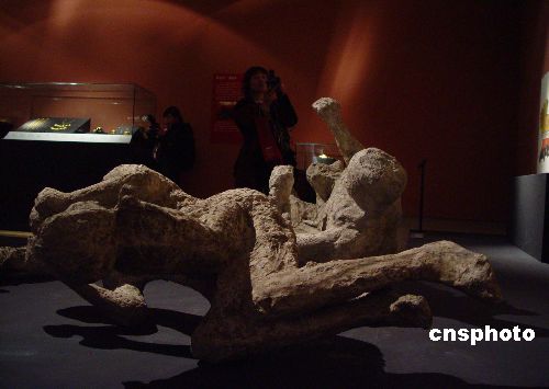 | 2007年2月15日至5月7日,由意大利坎帕尼亚大区旅游和文化遗产局、意大利庞贝考古管理局、意大利那不勒斯和卡塞塔考古管理局、中华世纪坛世界艺术馆和浙江省文化厅共同主办的《庞贝末日——源自火山喷发的故事》展(简称“庞贝”展),将在中华世纪坛世界艺术馆拉开帷幕,“庞贝”展将力求再现庞贝在公元79年8月24日不到1天的时间内遭受火山爆发、4次熔岩流和3次灰尘暴袭击后化为废墟的场景。中新社发 杜洋 摄
