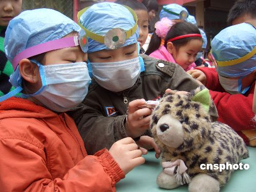 3月2日,山东枣庄一幼儿园举办“我给‘小动物’检测听力”活动,让孩子们在游戏中学习爱护耳朵、保护听力的健康知识,迎接3月3日全国“爱耳日”的到来。中新社发 吉 喆 摄