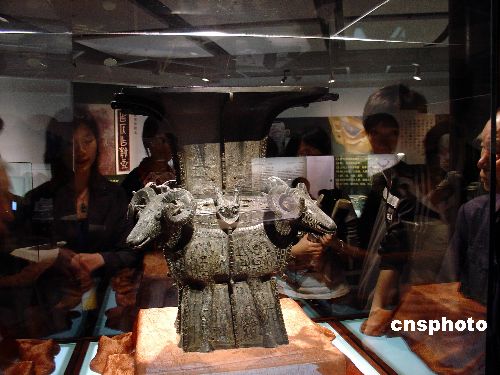 “国家宝藏——中国国家博物馆藏品展”3月30日上午在长沙开展。48年来首次回湘“探亲”的国宝级藏品“四羊方尊”受到长沙市民热捧。1938年湖南长沙出土的商代“四羊方尊”被认为中国青铜铸造史上最伟大的作品,1959年被调入北京中国历史博物馆。中新社发 李思之 摄