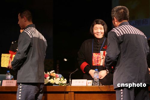 四月五日,著名作家毕淑敏新作《女心理师》在北京市监狱举行首发仪式,毕淑敏在首发仪式上向北京市监狱赠送了《女心理师》和《忧郁》等心理书籍。有多年心理咨询从业经验的毕淑敏还把“心理诊所”开进了监狱,为参加活动的服刑人员做“世界上最大的勇气莫过于相信奇迹”的演讲,探索心理困惑和自我救赎之路。中新社发 盛佳鹏 摄