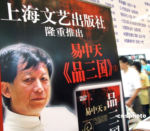 2007年4月11日,据上海文艺出版社副总编辑魏心宏介绍,在近16个月中,易中天所著的6本书已经为该出版社创造了将近一亿元的产值。截至目前,易中天《品三国》上册销量已经达到220万册,下册预定数量已经超过180万册,预定数量还在继续。预计三个月后,上下册总量极有可能突破500万册。中新社发 井韦 摄
