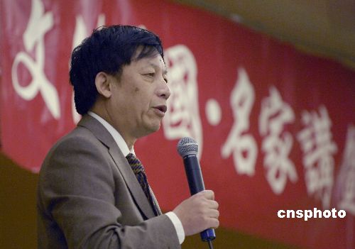 中国“学术超男”易中天四月二十二日在旧金山论中国东南西北中五大城市的个性和魅力。应中国海外交流中心邀请,易中天四月下旬赴美开始“文化中国“之旅,他还将在柏克莱加大、哈佛大学和哥伦比亚大学继续讲述中国历史和文化。中新社发 陈钢 摄