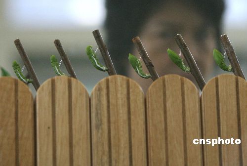 五月二十日,香港湿地公园迎来开幕一周年庆祝典礼,许多市民冒雨前往参观。图为观众在刚正式起用的蝴蝶园参观蛹的形态。中新社发 武仲林 摄