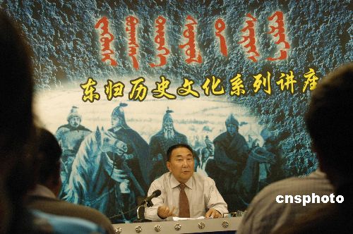 5月21日,国家一级作家道·乃岱在讲述“东归历史文化”系列讲座之一“卫拉特蒙古的联盟”。当日,由新疆巴音郭楞蒙古自治州有关部门为祖国大地唱向“爱党、爱国、爱社会主义”主旋律,大力私扬东归爱国主义精神而主办的新疆蒙古族学者讲述“东归历史文化”电视讲座活动正式启动。