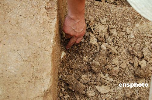 5月27日,安徽省含山凌家滩古遗址第五次发掘工作取得重大发现,文物考古人员在一块墓地里首次发现玉器。虽然只是发现玉器一角,还不清楚玉器的形状,但这也让工作人员非常高兴,这是此次发掘工作开始10天来最振奋人心的发现。凌家滩古遗址位于安徽省含山县铜闸镇凌家滩村,距今约为5300—5500年的历史,有“中华远古文明曙光”之称。在凌家滩前四次发掘中,曾经发掘出大量采用了镂空、掏膛、微型管钻等技术制作的玉器,工艺十分发达,因而造就了凌家滩玉器文明的辉煌。中新社发 田斌峰 摄