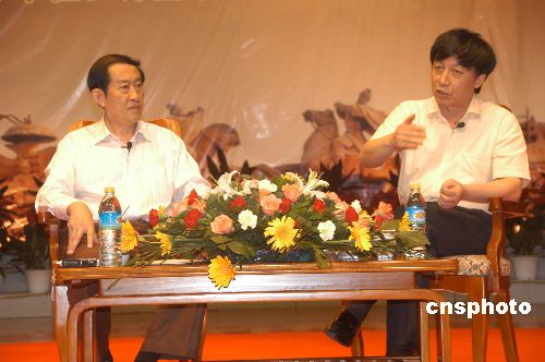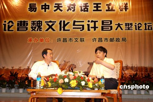 5月31日,中央电视台《百家讲坛》主讲人易中天和王立群作客河南许昌面对面畅论三国文化。中新社发 牛书培 摄