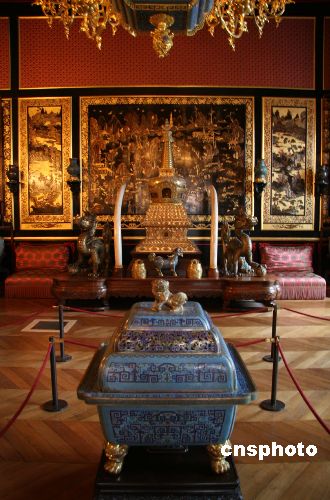 在1860年第二次鸦片战争中被法国军队掠夺的圆明园文物,已经和祖国离别一百四十七年了,现在仍静静的在巴黎南郊枫丹白露宫金碧辉煌的中国馆中沉睡。该馆并不经常开放,有时参观还要提前预约。中新社发 钟诚 摄