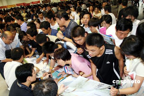 6月26日,山东潍坊“2007年普通高考填报志愿咨询大会(本科段)”开幕。全国的150多所高校前来接受咨询,吸引了数万名考生及家长。中新社发 张驰. 摄
