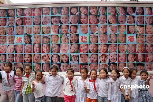2007年7月2日获悉,一面长十余米的“笑脸墙”近日在哈尔滨市花园小学校亮相,各学校纷纷效仿,可爱的笑脸让校园充满了温馨的气氛。中新社发 姚庭山 摄
