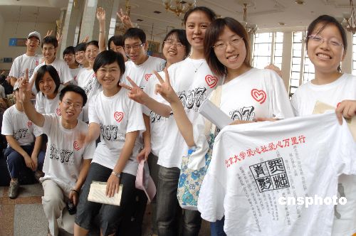 7月3日,北京大学爱心社“爱心万里行”成员,准备出发黑龙江前往支援教育、做社会调查和采风,以完成走遍中国的计划。中新社发 邹宪 摄