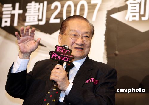 七月二十一日,金庸先生在香港书展与众多学生见面﹐交流武侠小说人物写作和人生体验。中新社发 王丽南 摄